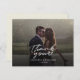 A great and thoughtful way to thank your friends, family, and coworkers who showed up to support you on your wedding day with this modern photo thank you card featuring a script hand lettered "thank you" and a love heart.
