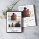 This is an elegant and classic wedding save the date card using an elegant and modern font along with three photos and an elegant border. The reverse side includes a message that you can personalize, along with another photo.