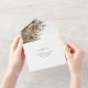 Simplify your wedding planning with our all-in-one wedding invitation on a white background, part of the "Elegant Winter Pinecone Greenery Wedding Suite." This design integrates all essential details into one elegant piece, framed by hand-painted greenery and pine boughs, ensuring a seamless and sophisticated presentation.