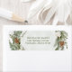 These stunning holiday return address labels feature a Christmas wreath border with elegant botanical greenery foliage, and pine cones with festive white flowers. A subtle, sage green watercolor splash decorates the center of the wreath.