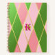 Elegant Pink and Green Argyle Spiral Notebook – Customizable Business Notebook in Glossy & Matte