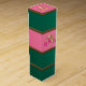 Add a touch of elegance to your special event with these stunning monogrammed wine boxes, part of the luxurious pink and green collection. Featuring a bold striped design in vibrant pink and green, these wine boxes are accented with a gold leaf motif and personalized monogram for a truly unique touch. Perfect for weddings, sorority events, birthdays, or any celebration where style and sophistication are key. Each box is crafted from high-quality materials, ensuring durability and a polished finish. The addition of a white satin bow enhances their luxurious appearance, making them an ideal choice for gifting small treats, candies, or keepsakes. These customizable favor boxes are sure to impress your guests and add a memorable, personalized element to your event decor.