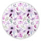 Watercolor pattern of pink and purple flowers with green leaves on a white background. The floral design is delicate and charming, creating a soft, artistic feel.
