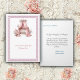 Celebrate the special day of baptism with this beautifully designed baby girl baptism greeting card. Featuring an elegant white crib adorned with a graceful canopy of white and pink fabric, and a charming pink-and-green floral arrangement, this card captures the innocence and joy of this sacred occasion. Personalize the front with the baby's name and edit the heartfelt message inside to make it truly unique. The front reads, "To A Special Baby Girl, Deborah Ann," while the customizable interior that reads " As your baby girl is baptized