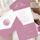 Elegant All- in- One tri-fold wedding invitation with a perforated RSVP postcard. Design in pink and white with an exquisite hand-drawn botanical wreath monogram encasing the couple's initials and modern hand-written calligraphy elements. Environmentally friendly, as there is no need for extra insert cards, RSVP cards, or even envelopes, this invitation has it all! Ability to add both Wedding Ceremony and Reception details, as well as RSVP postcard ready for guests to fill in and mail! Option to order invitations with printed (or hand write later) guest name on the back so you can mail card with no need of any envelope, - OR - if you prefer to use an envelope, simply erase guest name and address characters from text boxes to remove, or add a quote instead. Attractive design for the elegant, yet practical and eco-friendly couple! The outside flap features a beautiful pink watercolor wash and a white crest monogram. Part of our "Mauve Pink Watercolor Botanical Monogram Wedding" Collection with a variety of coordinating products available including mailing accessories and event products. Visit the entire collection with this link: https://www.zazzle.com/collections/mauve_pink_watercolor_elegant_monogram_wedding-119235672549123464
