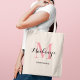 Sweet and polished, this elegant tote features a pink monogram initial layered with a personalized name in crisp black script and the bridal party role below. A charming monogram design with a playful feminine pop that works beautifully for spring and summer weddings. Name, initial, and role are fully customizable.