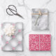 Elegant Pink Bling Silver Glitter Gift Wrapping Paper Sheets