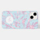 This elegant monogrammed Apple / Samsung phone case has a pretty floral pattern of pink flowers against a blue background. Add your initials.