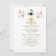 Elegant card design featuring watercolour delicate pink, blue flowers, green and gold leaves, a faux gold cross, faux gold confetti, on a white background. Use Personalize tool to add your info. For matching items, please, visit my Religious Events Collection.