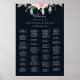 This elegant pink blush alphabetical seating chart is perfect for a simple wedding. The design features hand-drawn pink blush roses and peonies with green and gray leaves in a dark blue background, inspiring natural beauty.