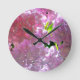 Elegant pink boho florals flowers hydrangeas round clock