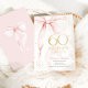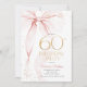 Elegant pink bow 60th birthday invitation. Feminine design in blush pink and gold. Features trendy watercolor coquette bow, and modern typography font. Perfect for an elegant style women's bday celebration. Personalize with your own details. Printed Zazzle invitations or instant download digital printable template.