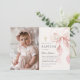Elegant Pink Bow Baptism Girl Photo Invitation