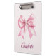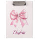 "Featuring a soft blush pink design and a delicate satin-style bow, this clipboard is customized with your name or initials in a graceful script font. Perfect for work, school, or as a thoughtful gift, this clipboard combines style and functionality in one chic accessory."