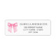 Elegant Pink Bow Return Address labels with a watercolor pink bow, name, and address template on clear to read typography in dark gray.