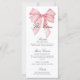 This event menu features an elegant pink ribbon bow with a classy font. Perfect for any bridal shower, wedding, birthday party or rehearsal dinner! Color of text and graphics is editable.