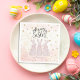 Celebrate Easter with elegance using our Elegant Pink Bunny Star Silhouette napkins. Perfect for your festive gatherings, these napkins feature charming bunnies adorned with delicate pink bows against a backdrop of golden stars. Personalize them with your family name for a unique touch. Ideal for adding a touch of sophistication to your Easter table. Order today to make your celebration truly special!