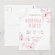 Elegant Pink Butterfly Birthday Party Invitation Postcard