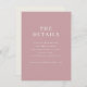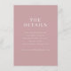 This elegant wedding enclosure card features a minimalist and sophisticated design with a soft pink background, creating an inviting and romantic atmosphere. The clean typography adds a touch of modernity while maintaining a classic feel, perfect for conveying essential details about the special day. Ideal for couples who appreciate understated elegance, this card seamlessly complements any wedding theme, ensuring guests have all the information they need in a stylish format.