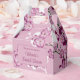 Elegant cherry blossoms a.k.a. sakura flowers, bridal shower favor box. Delicate pink flowers with modern burgundy and white cherry blossoms offset shadow. Pink backpack ground.