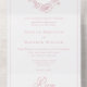 ALSO AVAILABLE WITH DINNER CHOICES OR WITH A QR CODE. Elevate your special day with our elegant, vintage Baroque-style wedding invitation, a masterpiece of timeless elegance. Featuring a delicate French dusty pink chinoiserie crest with delicate line art ribbons, flowers, birds and filigree on a pristine white background, this design exudes classic charm and sophistication. Its simplicity highlights its refined details, creating a design as graceful as your love story. Perfect for those who cherish tradition and elegance. Created by Simply Farmhouse Press.