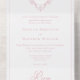 ALSO AVAILABLE WITH DINNER CHOICES OR WITH A QR CODE. Elevate your special day with our elegant, vintage Baroque-style wedding invitation, a masterpiece of timeless elegance. Featuring a delicate French dusty pink chinoiserie crest with delicate line art ribbons and filigree on a pristine white background, this design exudes classic charm and sophistication. Its simplicity highlights its refined details, creating a design as graceful as your love story. Perfect for those who cherish tradition and elegance. Created by Simply Farmhouse Press.