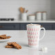 The Christmas latte mug showcases a pink Christmas tree topped with a golden star, set in an elegant snowball tree design. It's a cute, soft, and modern touch, perfect for enjoying a latte or hot chocolate while embracing the joy and warmth of Christmas Eve celebrations.