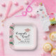 Create pink personalized graduation paper plates for class of 2025 party with a Congrats Grad saying, graduate's cap and diploma illustrations and beautiful pink flowers. Template makes it easy to type the graduate's name, school name and year of the event.