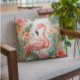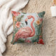 Elegant Pink Flamingo Bird and Tropical Flowers Throw Pillow