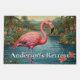 A vintage paradise with this retro-style pink flamingo, poised elegantly in a tranquil tropical lagoon.
