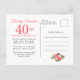 Elegant Pink Floral 40th Birthday Invitation Postcard