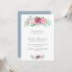 Elegant teacher's day invitation with a flower garland consisting of pastel pink and mauve roses at the top and bottom. Your event details are in a medium gray with the event title in a script font. The back is a dusty blue and may be changed to any color you wish. This floral design is great for a celebration in the spring.
