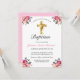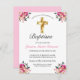 Elegant PInk Floral Gold Cross Baptism Invitation