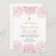 Elegant Pink Floral Gold Cross Girls Baptism Invitation