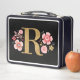Go back to school in style with this pretty pink floral monogram lunchbox. It is decorated with a gold letter "R" surrounded by flowers. Designed for you by Blackberry Boulevard.