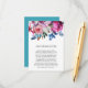 Modern floral Wedding Enclosure Card with peonies and roses in bold and vibrant pink with greenery sprigs in shades of teal and blue. The back is a matching shade of teal blue. This bright Wedding Enclosure Card in jewel tone colors is great for a summer wedding.