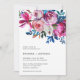 Modern floral All In One Wedding Invitation with peonies and roses in bold and vibrant pink with greenery sprigs in shades of teal and blue. The back has a template that acts as your enclosure card, where you can add your guest details. This bright Wedding Invitation in jewel tone colors is great for a summer wedding.