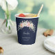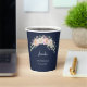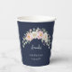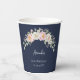 Add a touch of elegance to your drink station with these beautiful disposable paper cups. The design features a delicate watercolor arch of blush pink and cream roses, accented by soft green eucalyptus leaves. Customize the cup with the name and date of the birthday celebration in a sophisticated script font. These customizable cups are perfect for serving hot or cold beverages at a 30th, 40th, 50th, or any milestone birthday, bridal shower, or sophisticated event, offering a charming, cohesive detail to your party setting.