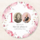 Elegant Pink Floral Photo 100th Birthday Party Round Paper Coaster