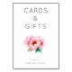 This wedding tabletop sign features a minimalist and elegant design with soft pink peonies at the center, accented by green leaves. The clean sans-serif typography highlights "CARDS & GIFTS" at the top and "thank you" below the floral illustration, creating a serene and harmonious aesthetic. With its modern minimalism and subtle romantic undertones, this sign is perfect for expressing gratitude in a refined manner, making it an ideal addition to any wedding celebration.