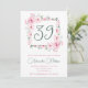 Elegant Pink Floral Watercolor 39th birthday Invitation