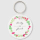 Elegant Pink Floral Wreath White Name of Couple Keychain