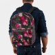 Elegant pink flowers black monogram printed backpack