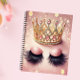 Elegant Pink & Gold Crown Eyelashes Notebook