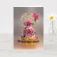 A stunning birthday card featuring a beautifully decorated tiered cake adorned with vibrant pink florals, delicate greenery, and glowing golden accents. Set against a soft, warm background with subtle sparkle, this design creates a romantic and elegant feel—perfect for celebrating someone truly special.