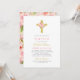 Elegant Pink Gold Floral Cross Baby Girl Baptism Invitation