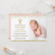 Elegant Pink Gold Glitter Cross Girl Baptism Photo Invitation