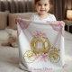 Pink and gold princess baby blanket with pretty gold floral carriage on a beautiful pink and gold swirl floral background. This princess baby blanket is easily customized with baby's name or the text of your choice in the font style you prefer.You can also change the background color on this princess baby blanket.