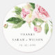 Elegant Pink Green Peony Floral Thanks Wedding Classic Round Sticker