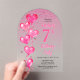 Elegant Pink Heart Balloons 7th Birthday Party Acrylic Invitations